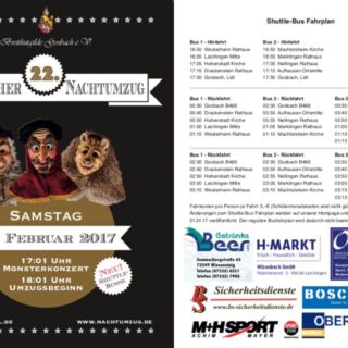22. Gosbacher Nachtumzug am 04.Februar 2017 Da sind wir wieder dabei. In Gosbach geht der Punk ab. Kommt alle mit. Pünktlich um 18 Uhr am Samstagabend starten die Gruppen – Narrenzünfte, Guggenmusiken und Schalmeien –...