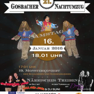 21. Gosbacher Nachtumzug Da sind wir wieder dabei. In Gosbach geht der Punk ab. Kommt alle mit. Pünktlich um 18 Uhr am Samstagabend starten die gut 60 Gruppen – Narrenzünfte, Guggenmusiken und Schalmeien – und...