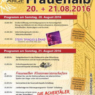 Klostertage 2015 Entstehung der Klostertage Frauenalb Frauenalb verdankt seine Existenz der Gründung eines Benediktinerklosters durch die Grafen von Eberstein im 12.Jahrhundert. Die Klosteranlage, die mehrmals durch Brände zerstört wurde, dies letztmals im Jahre 1853,...